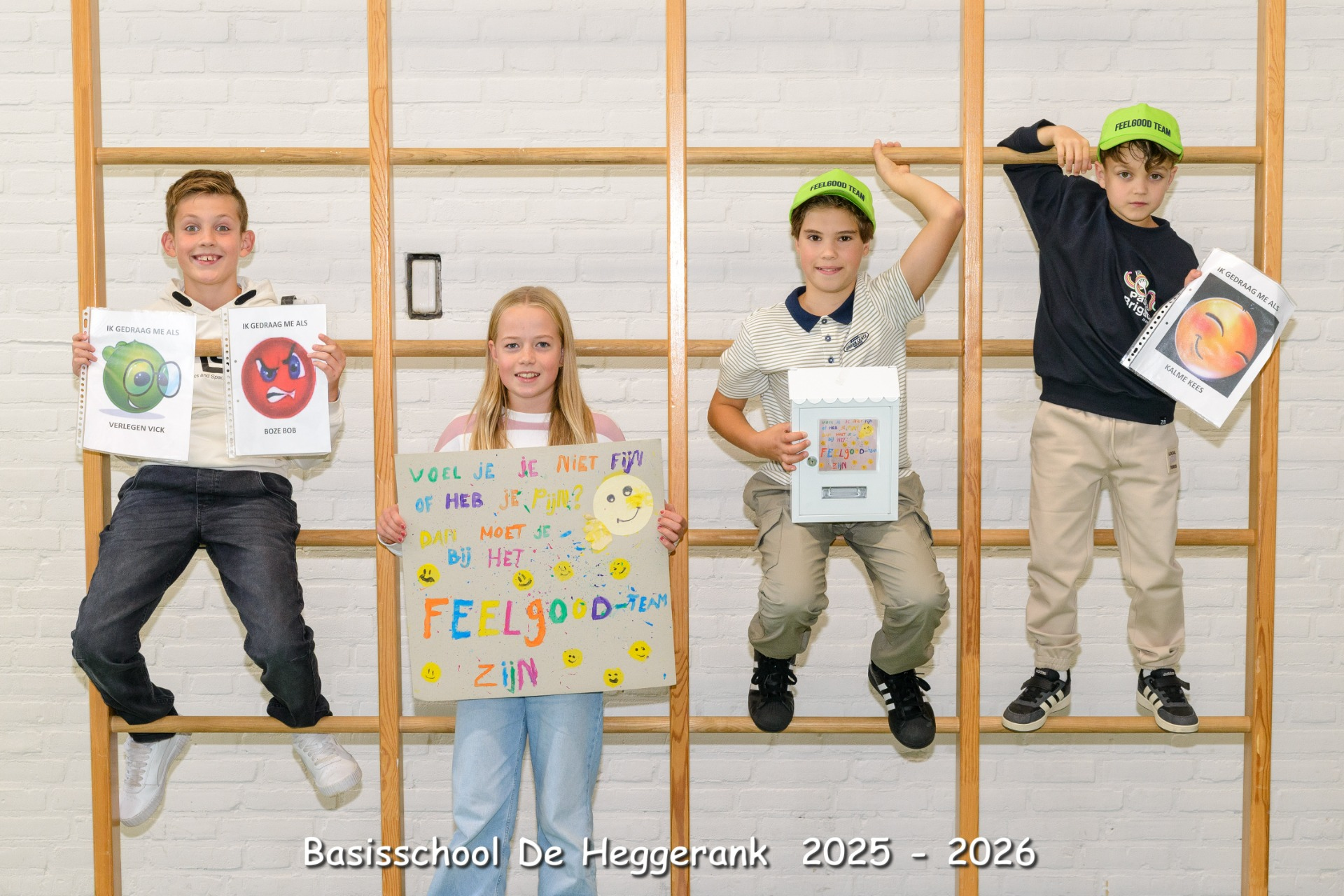 In ons Feel Good team van de school zitten 2 leerlingen van groep 8 en 2 leerlingen van groep 7.